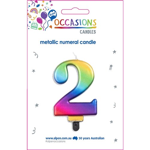Alpen Jumbo Numerical Birthday Candle No. 2 Metallic Rainbow