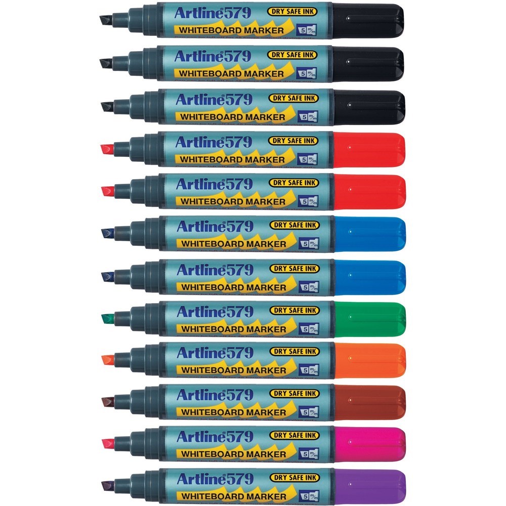 Artline 579 Whiteboard Markers Chisel 2-5mm 8 Assorted Colours Pack Of 12