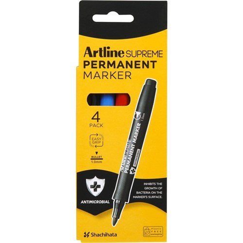 Artline Supreme Permanent Marker Bullet 1mm Assorted Colours Pack Of 4