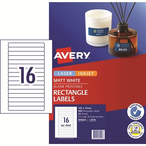 Avery Multi-Purpose Laser & Inkjet Labels White L7674 145x17mm 16UP 400 Labels