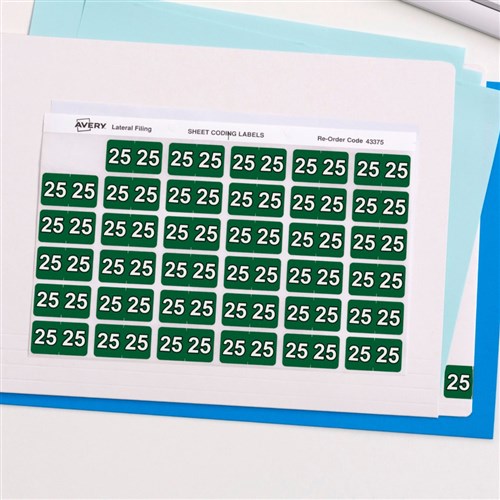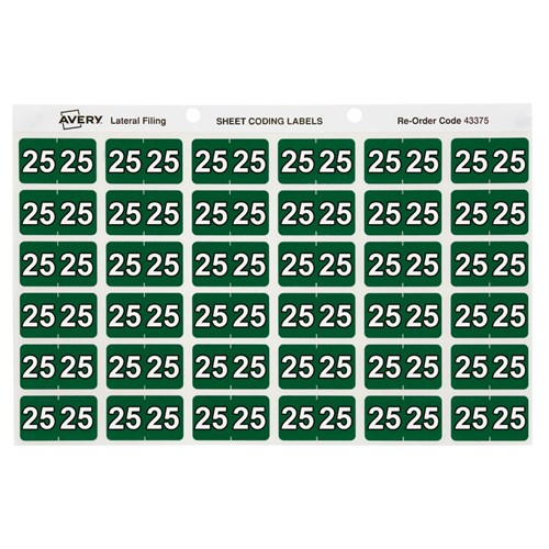 Avery Side Tab 25 Year Coding Labels 25 x 38mm Dark Green Pack Of 180