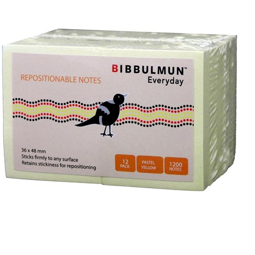 Bibbulmun Everyday Sticky Notes 36 x 48mm Yellow 100 Sheets Pad Pack of 12