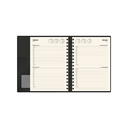 • Printed on a subtle cream paper, each dated page layout features a six-month to opening calendar, week numbers, Julian days, as well as both national and international public holidays.