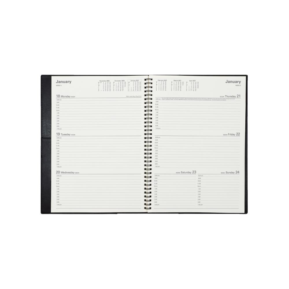 • Ideal for those 'on the move' with its double wiro binding and heavily grained metallic and matt PU cover.