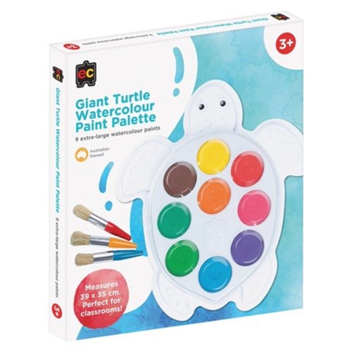 • The perfect addition to any classroom. Turtle-shaped palette features 9 extra-large watercolour blocks that are highly pigmented, offering vibrant colours for all little artists' creations.