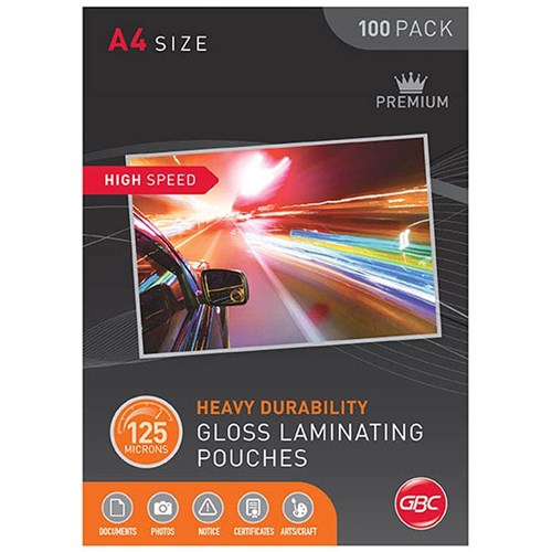 GBC Laminating Pouches A4 125 Micron High Speed Gloss Pack Of 100