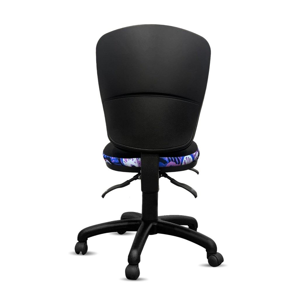 • Heavy duty commercial chair with 3 lever mechanism and ratchet back height adjustment.