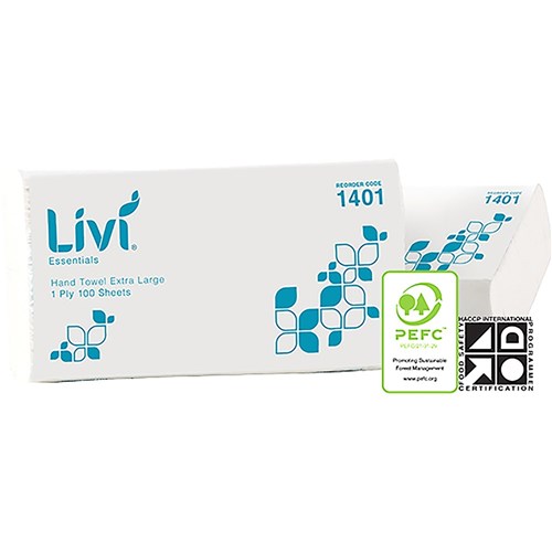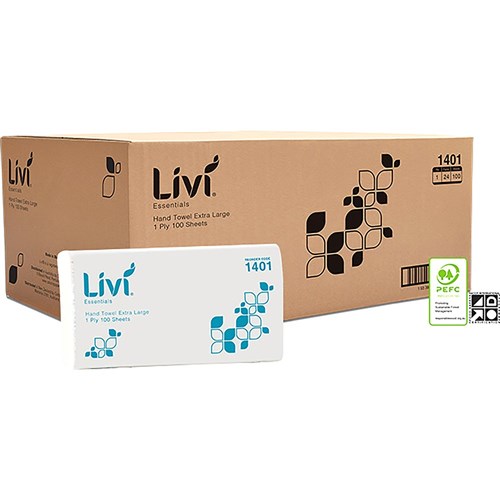 Livi Essentials Hand Towel Extra Large 1 Ply 100 Sheets Box Of 24