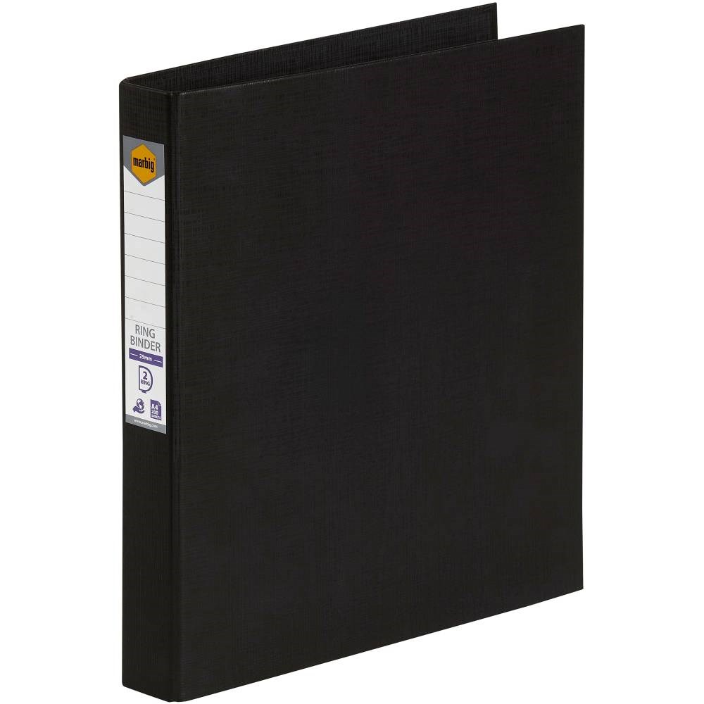 Marbig Linen PE Binder A4 2D Ring 25mm Black