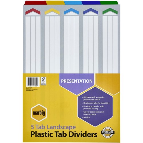 Marbig Plastic Indices & Dividers A3 Reinforced 5 Tab Landscape Multi Colour
