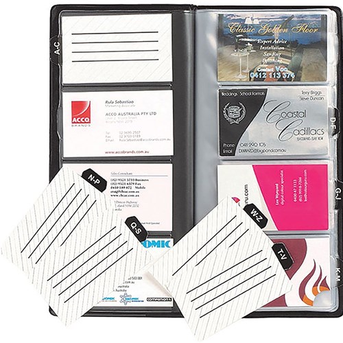 Marbig Standard Business Card Holder A-Z Indexed 255 x 125mm 96 Card Capacity Black