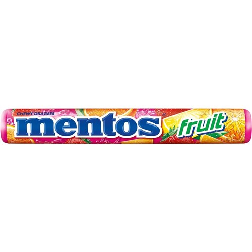 • Mentos chewy dragee rolls are available in a wide range of flavours in a convenient on-the-go roll pack which means you can stick one in your pocket, handbag or car.