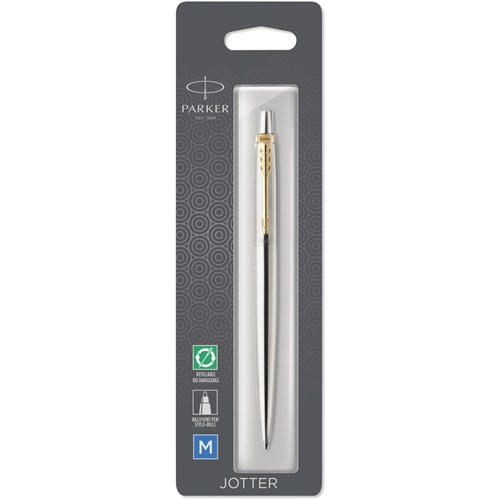 Parker Jotter Ballpoint Pen Gold Trim Stainless Steel Blue