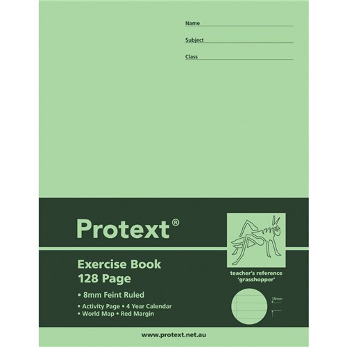 Protext Exercise Book 225x175mm 8mm 70gsm 128 Page Grasshopper