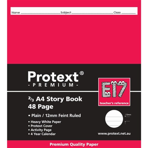 Protext Premium Story Book 2/3 A4 48 Page Plain/Ruled 12mm Red Margin E17