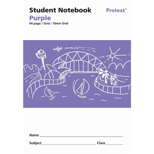 Protext Student Grid Notebook 250 x 175mm 10mm Grid 64 Page Purple