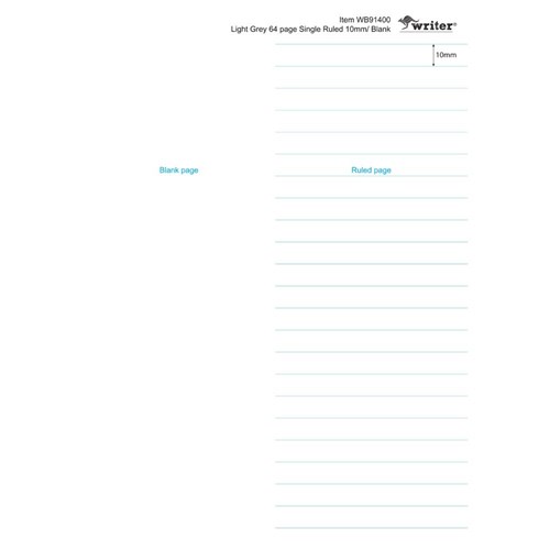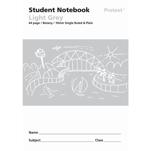 Protext Student Note Book 250 x 175mm Single Ruled 10mm/Plain 64 Page Light Grey