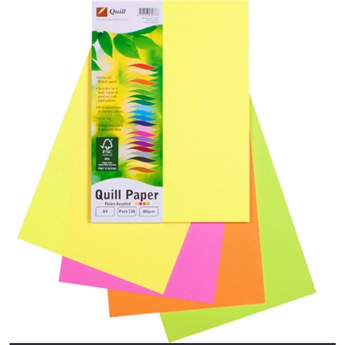 QUILL XL MULTIOFFICE PAPER A4 80GSM Fluoro Assorted Pack 500