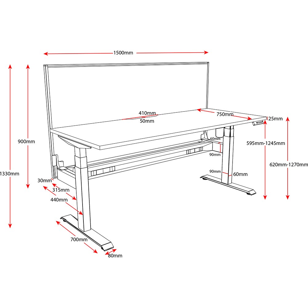 • Unit Dimension: 1500mm W x 750mm D x 620-1270mm H.