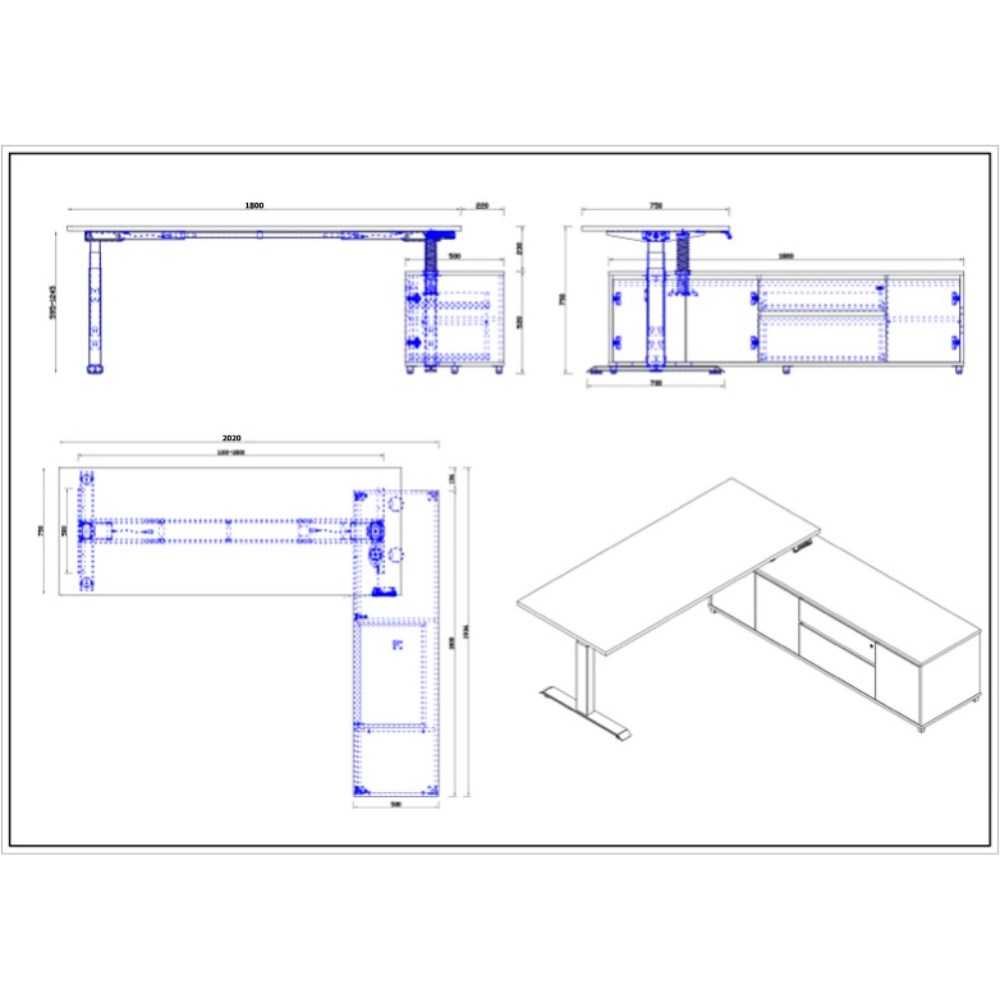 • Desk Dimensions: 1800W x 750D x 620-1270mmH.
