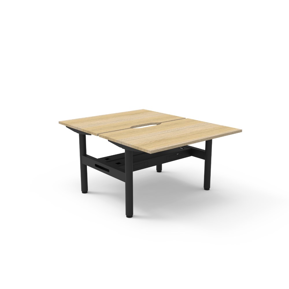 • Natural Oak top Black Satin frame. Double sided workstation with cable tray.