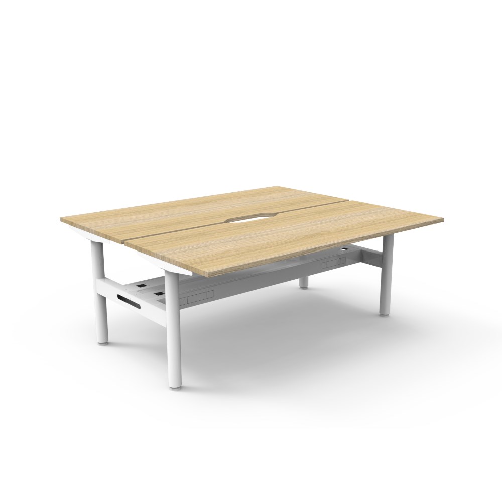 Rapidline Halo Static Back To Back Workstation + Cable Tray 2 Person 1800Wx730mmH Oak/Wht