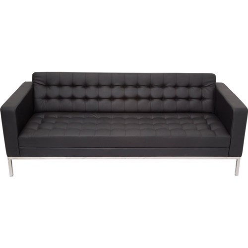 Rapidline Venus Triple Sofa Stainless Steel Frame Button Finish Black PU Upholstery