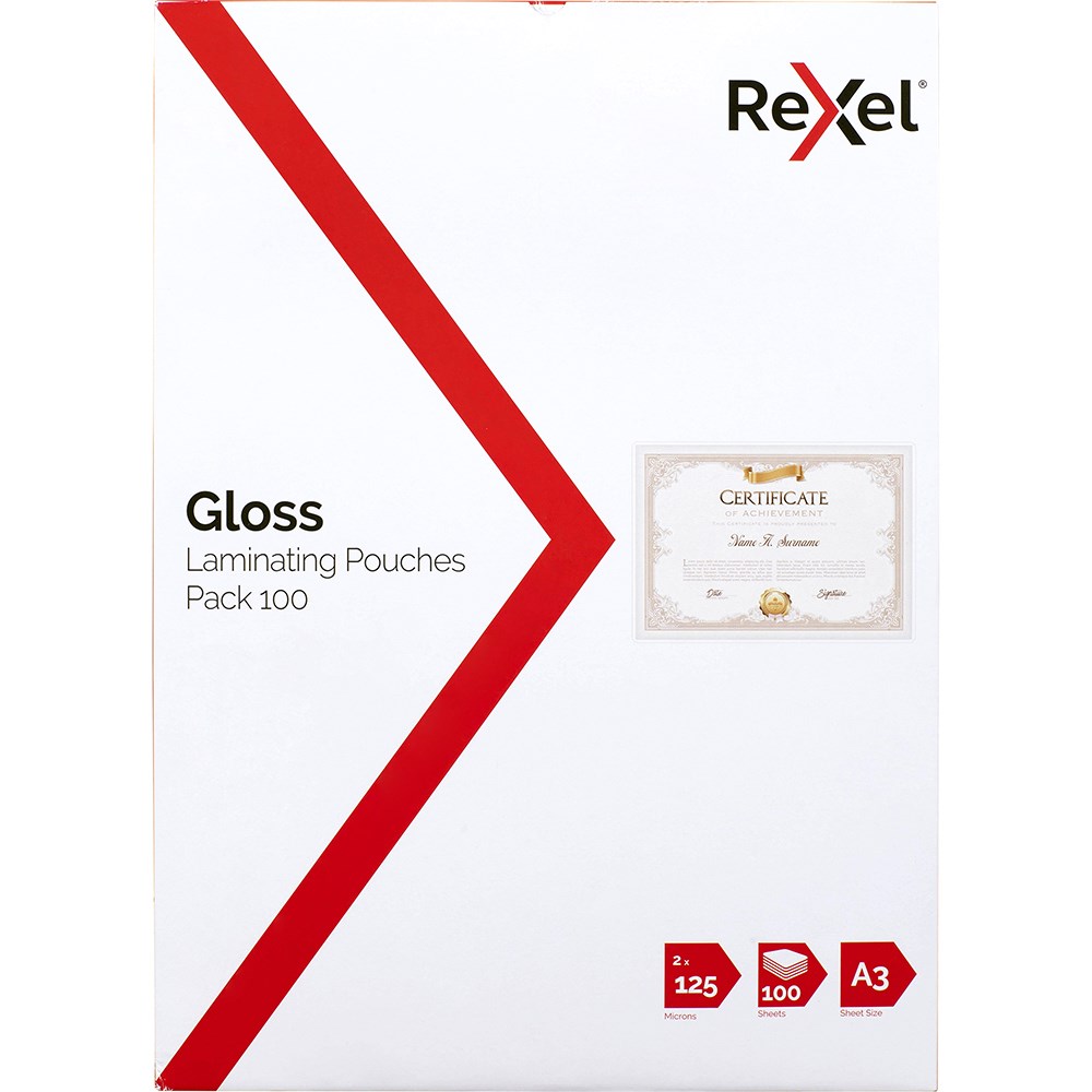 Rexel Laminating Pouches A3 125 Micron Gloss Pack Of 100
