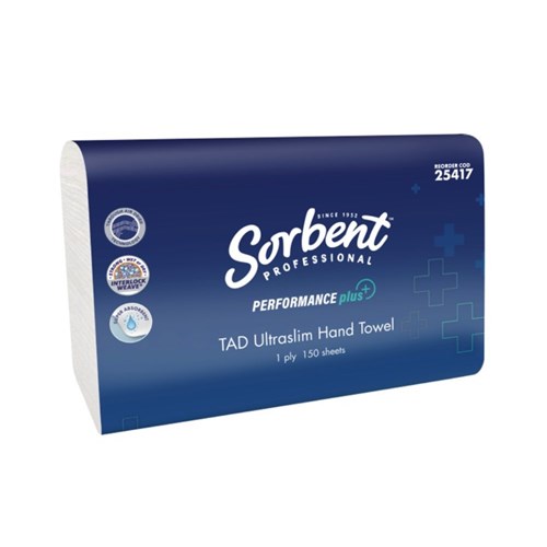 Sorbent Pro Performance Plus TAD Ultraslim Hand Towel 1 Ply 150 Sheets Carton Of 16