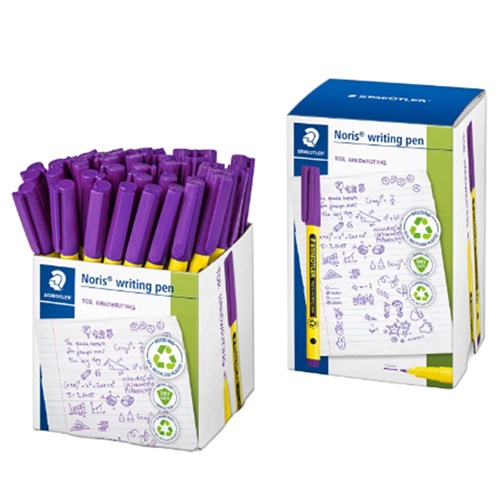 • The cup of 50 Noris writing pen in violet has been designed with a pressure resistant tip an ideal fineliner for school.