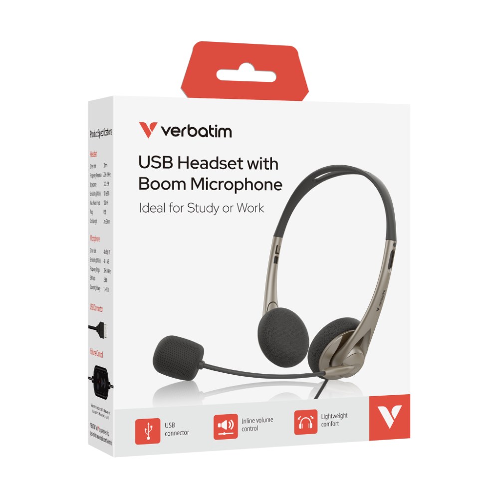 Verbatim Headset With Boom Microphone And USB-C Connector Grey