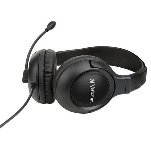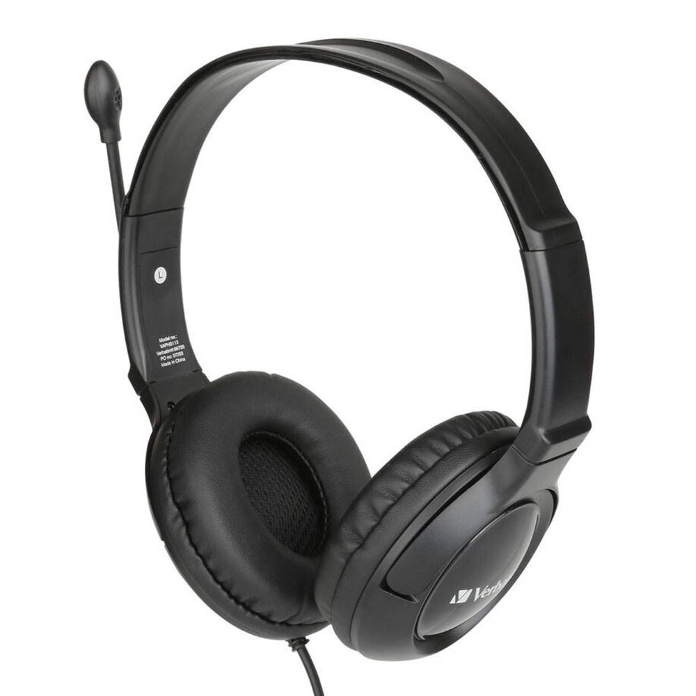 Verbatim Headset With Noise Cancelling Boom Microphone And Audio Jack Black