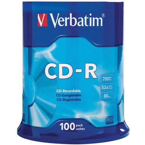 Verbatim Recordable CD-R 80Min 700MB 52X Spindle Pack Of 100