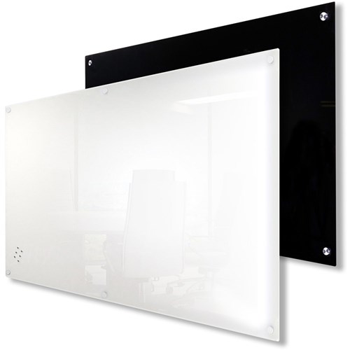 • White glassboard has white fittings, black glassboard has silver fittings.