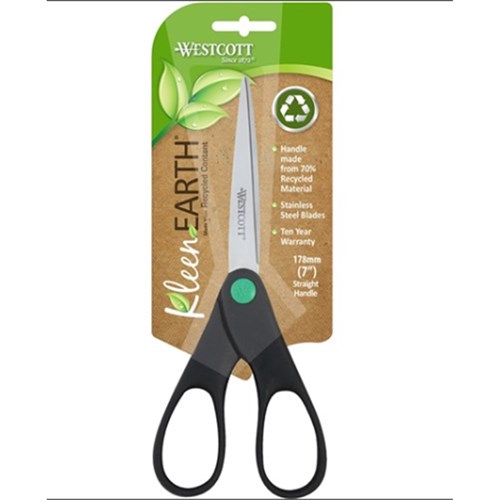 Westcott KleenEarth Scissors 178mm Straight Handle Black