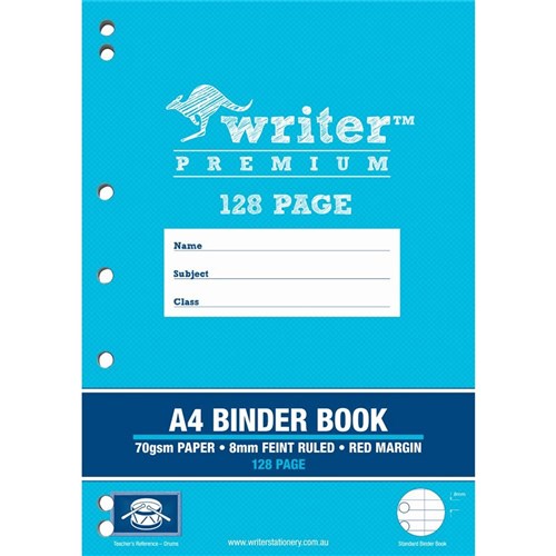 • Writer Premium Binder Books feature heavy duty covers, high quality white 70gsm paper with blue ruled lines and a red margin