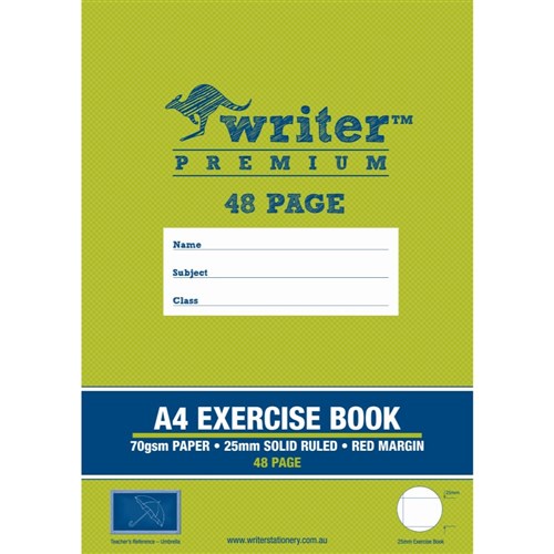 Writer Premium Exercise Book A4 48 Page 25mm Solid Ruled With Margin Umbrella